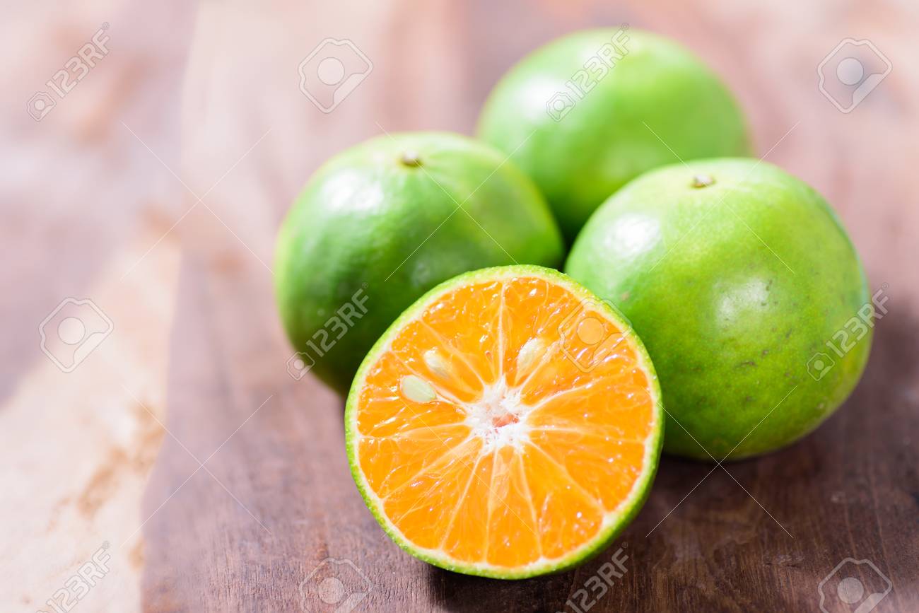 Green Tangerine Orange Fruit On Wooden Background Healthy Fruit Stock Photo Picture And Royalty Free Image Image 89704580